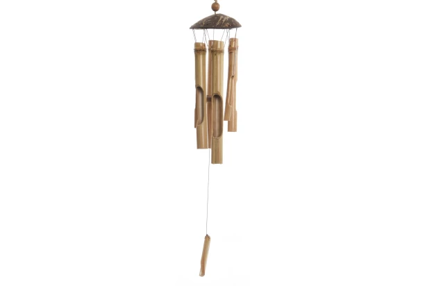 Tradiční bambusová zvonkohra v přírodním vzhledu vnese do vaší zahrady, na terasu nebo balkon uklidňující atmosféru. Zvuk, který vzniká působením větru, navozuje pocit klidu a relaxace. Výška 63 cm.