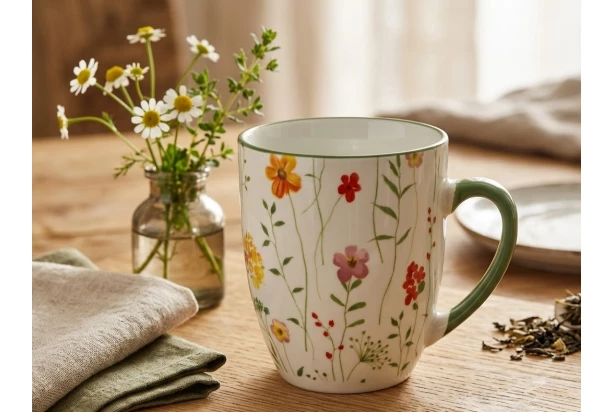Hrnek s jemným akvarelovým květinovým dekorem dodá každé kuchyni svěží atmosféru. Díky objemu 330 ml se hodí jak pro ranní snídani, tak pro klidné odpolední chvíle s přáteli.