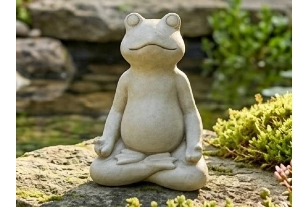 Dekorační soška ve tvaru meditující žáby vnese do vaší zahrady, na terasu nebo k zahradnímu jezírku atmosféru naprostého klidu a pohody. Dekorace je vyrobena z oxidu hořečnatého, který je velmi odolný a věrně imituje přírodní kámen. Žába je dodávána ve 3 různých jógových polohách.