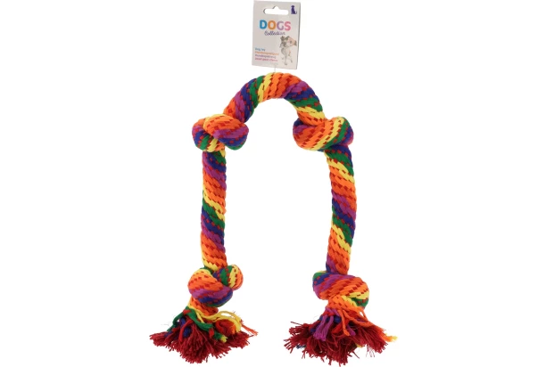 Barevné přetahovací lano s uzly o délce 78 cm je skvělou hračkou pro vašeho psa. Díky hravému duhovému designu přináší spoustu zábavy a podněcuje psa k aktivní hře. Je ideální nejen na přetahování, ale také pomáhá přirozeně čistit zuby a udržovat je zdravé. Ať už si budete hrát venku nebo doma, odolné provedení zajišťuje dlouhou životnost i při intenzivním používání.