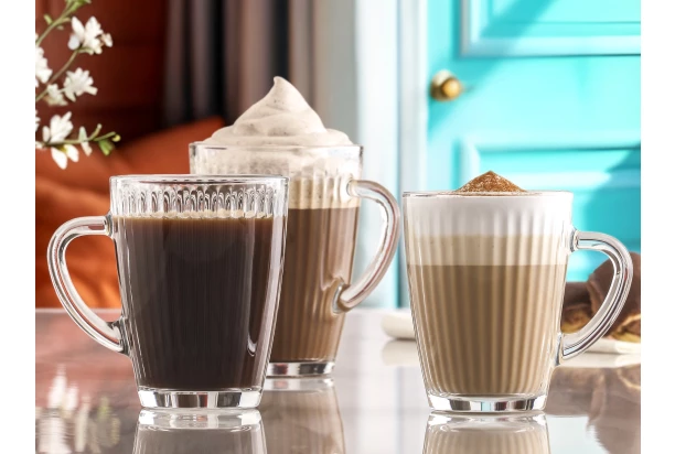 Skleněný hrnek s vroubkováním je ideální pro kávu nebo čaj. Objem 400 ml.