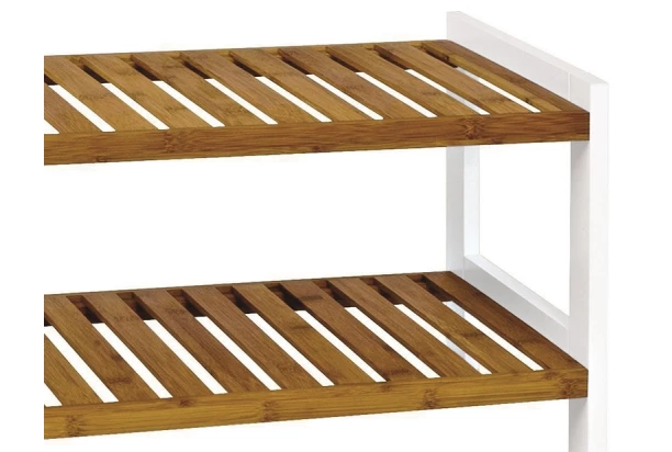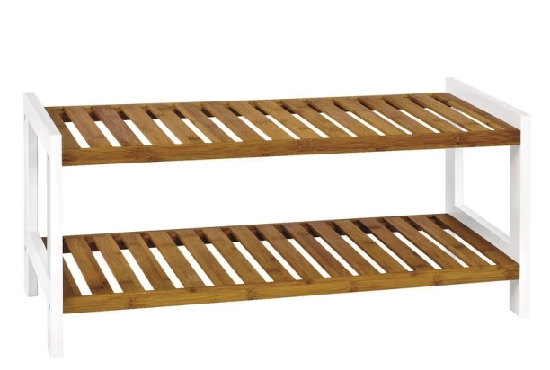 Otevřený botník/regál na boty obsahuje dvě police z bambusového dřeva pro útulně působící předsíň. Často využívanou obuv tak budete mít vždy přichystanou při ruce.