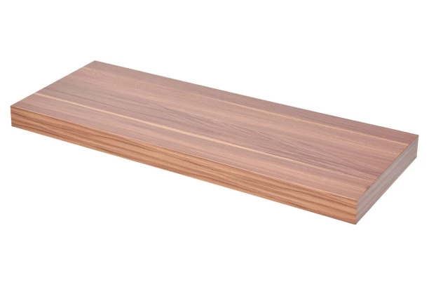 Police na zeď o šířce 60 cm v dekoru ořech – jednoduchý univerzální design pasuje do každého interieru. Kovové konzoly pro zavěšení jsou prakticky ukryty ze zadní strany.