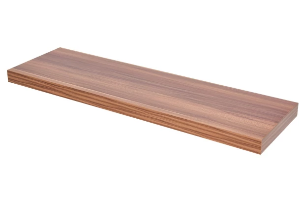 Police na zeď o šířce 80 cm v dekoru ořech – jednoduchý univerzální design pasuje do každého interieru. Kovové konzoly pro zavěšení jsou prakticky ukryty ze zadní strany.