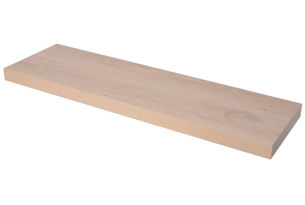 Police na zeď o šířce 80 cm v dekoru bílý dub – jednoduchý univerzální design pasuje do každého interieru. Kovové konzoly pro zavěšení jsou prakticky ukryty ze zadní strany.