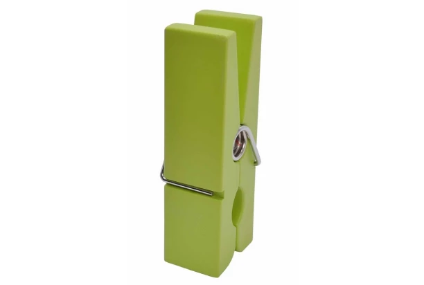 Nástěnný držák ve vtipném designu velkého zeleného kolíku poslouží například pro pověšení utěrek, ručníků anebo tašek. I jako držák pro připnutí fotek nebo obrázků.