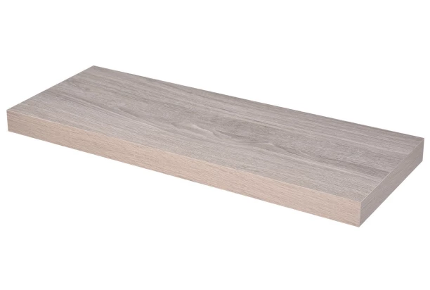 Police na zeď o šířce 60 cm v dekoru šedý dub – jednoduchý univerzální design pasuje do každého interieru. Kovové konzoly pro zavěšení jsou prakticky ukryty ze zadní strany.