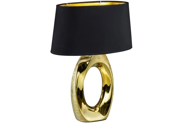 Luxusní stolní lampa s zaoblenou konstrukcí a čeným stínidlem, které je z vnitřní strany doplněno zlatou barvou. Skvěle doplní Váš stylový interiér obýváku, ložnice nebo jakékoliv chodby. Výška 52 cm.