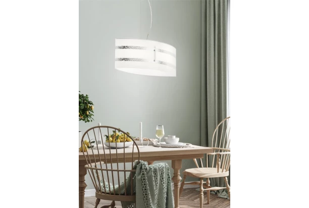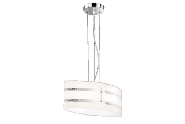 Elegantní stropní lampa se skleněným stínidlem, které má dekorativní stříbrné pruhy se záměrnými stopami po roztržení. Skvěle se hodí do kuchyně nebo jídelny.