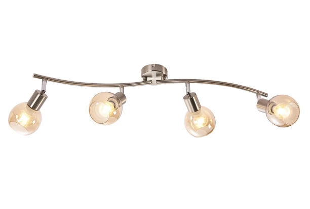 Elegantní stropní osvětlení Castello se 4 stínidly je vyrobeno z matného niklového kovu s jantarovým sklem a hodí se do obývacího pokoje, ložnice nebo kamkoliv jinam.