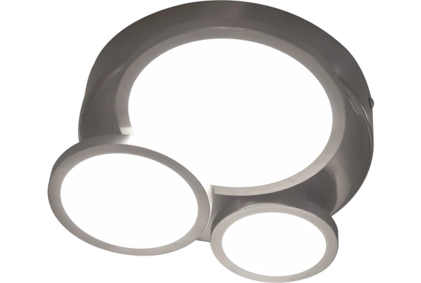 Stmívatelné stropní LED osvětlení ze série NEO má moderní design kruhů. Svítidlo je vyrobeno z kovu v provedení matný nikl. Poskytuje příjemné světlo v teplé barvě. Varianta se 3 svítidly.