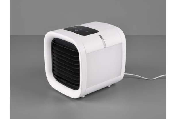 Moderní ochlazovač vzduchu ICECUBE díky svému integrovanému ventilátoru a zvlhčovači zajišťuje příjemnou pokojovou teplotu i v horkých letních dnech. Vzduch je distribuován rovnoměrně a vytváří dokonalou atmosféru pro dobrý pocit nebo práci. Klimatizace je dodávána s Touch displejem, který umožňuje pohodlný výběr různých nastavení. Vybírat lze mezi pěti úrovněmi rychlostmi vzduchu a dvěma různými režimy chlazení. Ventilátor je navržen v čistě bílé barvě s černými detaily a svítidlo s moderní LED technologií se vyznačuje vysokou kvalitou světla a energetickou účinností. Umožňuje také nastavit čtyři barvy světla červenou, zelenou, modrou a bílou (RGBW). Větrák lze připojit do zásuvky nebo USB.