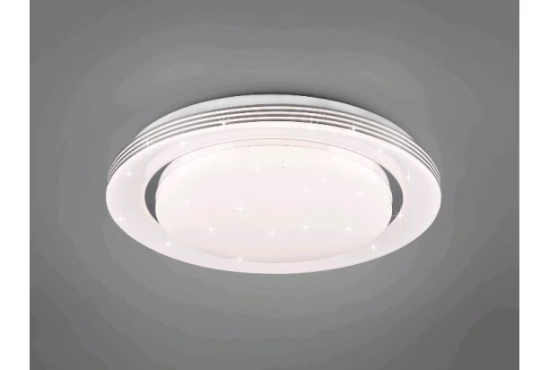 Jednoduché stropní LED osvětlení zaujme svými třpytivými kousky, které po rozsvícení vytvoří efekt hvězdné oblohy. Světlo lze pohodlně vypínat a zapínat pomocí dálkového ovladače, díky kterému lze také nastavit požadovanou intenzitu a barvu světla. Nastavení světla se uloží do paměti, které se může po rozsvícení znovu aktivovat. Svítidlo je vybaveno funkcí nočního osvětlení, a proto poskytuje příjemný jas pro orientaci ve tmě.