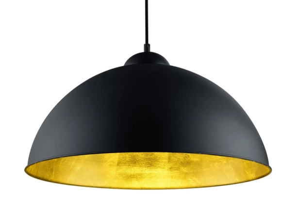 Velký lustr laděný do industriálního stylu má černé kovové stínidlo, které je z vnitřní strany ošetřeno nátěrem se záměrnými stopami po šrámech a obroušení. Dokonale se tak hodí do stylově zařízených interierů.