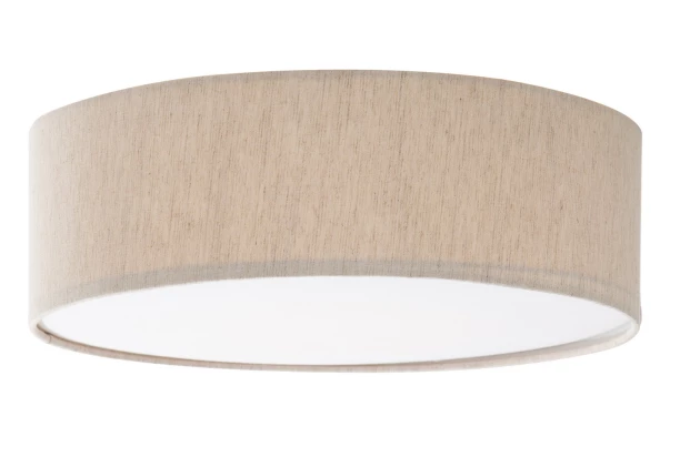 Stropní osvětlení s textilním stínidlem ve světle béžové barvě osvětlí a doplní interiér domova.