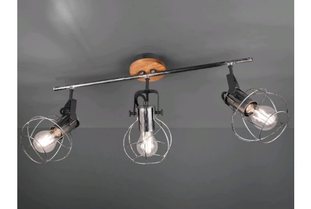 Stropní světlo v industriálním vintage stylu ze série Madras vytvoří v místnosti příjemnou atmosféru díky kombinaci dřeva a kovu ve starožitné stříbrné barvě. Svítidlo je doplněno ozdobným kovovým krytem a může sloužit jako decentní doplňkové osvětlení obývacího pokoje nebo ložnice. Varianta se 3 svítidly.