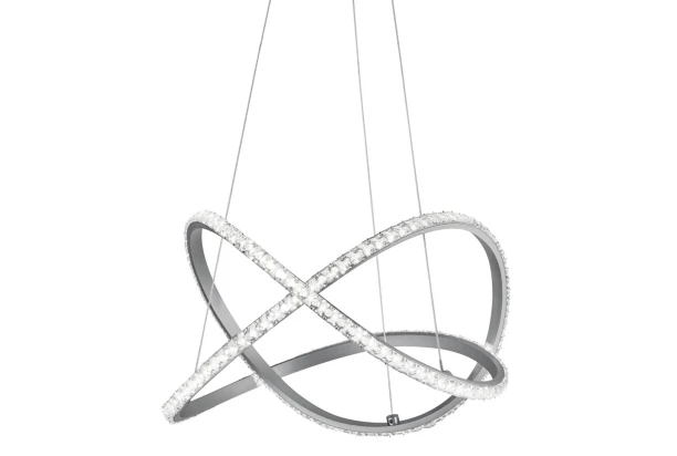 Moderní a elegantní lustr ve tvaru propleteného prstence s křišťálovým efektem se stane skutečným designovým a světelným poutačem v obývacím pokoji nebo kuchyni. Lampa s úspornou LED technologií má navíc integrovaný stmívač a měnič barev RGBW, funkci nočního osvětlení a to vše lze ovládat na dálku.