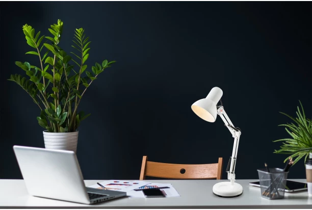 Moderní lampa k psacímu stolu v bílém provedení má tři pružné klouby, díky kterým lze světlo optimálně nasměrovat a zajistit tak dobrou pracovní atmosféru. Lampička poskytuje jasné světlo v dětském pokoji, ale hodí se i jako lampa na čtení v obývacím pokoji nebo ložnici.