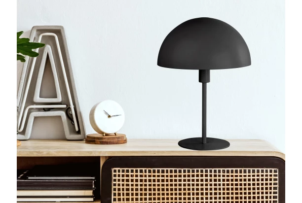Všestranná stolní lampa o výšce 35 cm v klasickém designu má černé kovové stínidlo, které směřuje světlo k podlaze a poskytuje tak příjemné nepřímé osvětlení. Svítidlo působí harmonickým dojmem a lze jej integrovat téměř do každého interiéru. Ideální jako atmosférické doplňkové osvětlení např. v chodbě, na odkládacím stolku nebo jako noční lampička.