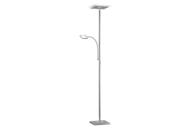 Kovovou stojací lampu v matném niklovém provedení se 2 akrylovými stínidly lze snadno kombinovat s mnoha styly vybavení. Kromě hlavního osvětlení má lampa navíc boční svítidlo, které poskytne výborné světlo pro čtení, a proto je ideální tuto lampu umístit vedle pohovky nebo křesla. Díky flexibilnímu nastavení lampy lze libovolně nasměrovat zdroj světla. Výška 182 cm.