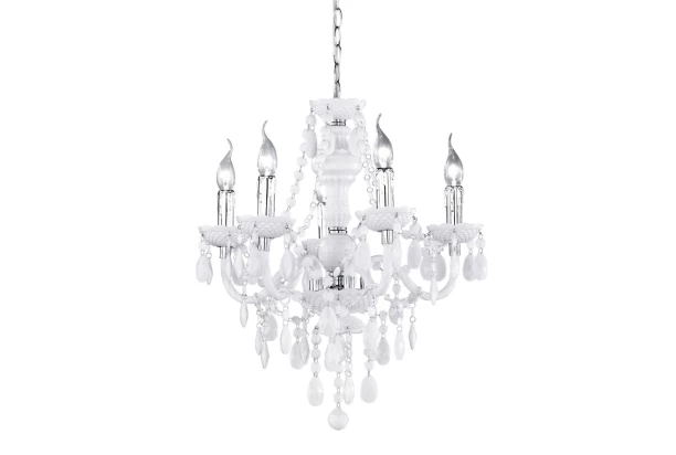 Třpytivý lustr z imitace křišťálu je stále módním doplňkem interiéru. Lampa o průměru 52 cm s 5 svítidly je vyrobena z lesklého kovu a bílého akrylu. Okouzlující osvětlení dokonale zapadne do moderních i klasických stylů zařízení.