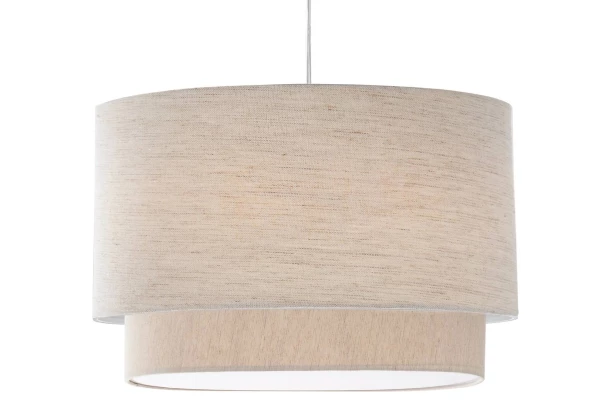 Lustr s dvojitým textilním stínidlem v plátěném světle béžovém vzhledu vytvoří příjemnou světelnou atmosféru například v jídelně nebo ložnici. Klasický design a decentní barevné provedení lze snadno integrovat téměř do každého interiéru.