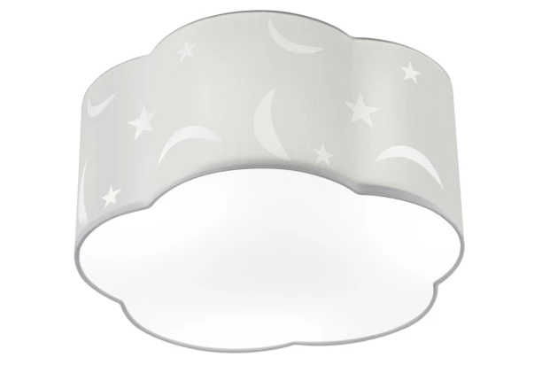Stropní osvětlení o průměru 40 cm vnese do dětského pokoje útulnou atmosféru a zároveň poskytne příjemné neoslňující světlo pro hraní, malování a další aktivity. Svítidlo ve tvaru mraku je ozdobeno hvězdami a měsíci, které se po rozsvícení lampy stanou magickým poutačem. Jednoduché bílé provedení se snadno přizpůsobí všem barevným schématům v pokojíčku.