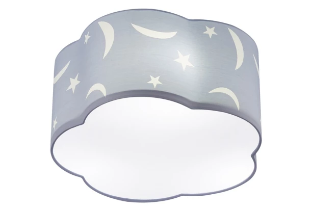Stropní osvětlení o průměru 40 cm vnese do dětského pokoje útulnou atmosféru a zároveň poskytne příjemné neoslňující světlo pro hraní, malování a další aktivity. Svítidlo ve tvaru mraku je ozdobeno hvězdami a měsíci, které se po rozsvícení lampy stanou magickým poutačem. Jemné pastelově modré provedení se hodí téměř do jakéhokoliv pokojíčku.