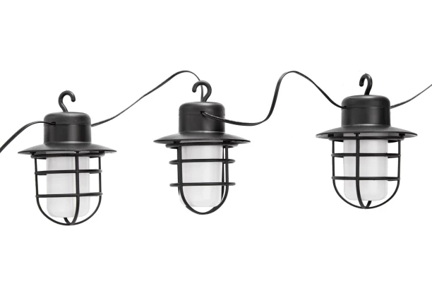 Solárně napájený LED světelný řetěz se skládá z celkem 8 sférických světelných zdrojů a je ideální pro dekorativní osvětlení terasy, zahrady nebo balkonu. Černá stínidla jsou vyrobena z odolného plastu, která vytváří krásný světelný efekt. Díky LED blikajícímu efektu světlo uvnitř lampy připomíná plápolající plamínek ohně. Tento řetěz s malými lucerničkami je nejen funkčním, ale také mimořádně atmosférickým světelným zdrojem a přispívá k velmi útulné atmosféře. Zahradní party s osvětleným stromem nebo plotem může začít.