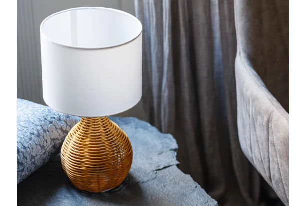 Dekorativní stolní lampa v trendovém ratanovém výpletu vnese do domova útulnost a příjemnou světelnou atmosféru. Design podstavce lampičky ve tvaru hrušky podtrhuje moderní lehkost. Svítidlo si oblíbí zejména milovníci boho stylu.