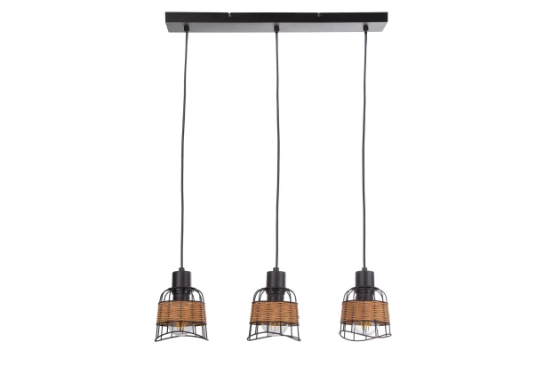Závěsné stropní osvětlení s možností výškového nastavování má 3 svítidla a stane se opravdovým poutačem v jídelním nebo obývacím prostoru. Elegantní mřížové kovové stínidlo se zvlněným spodním okrajem je opleteno ratanem, který dodává svítidlu stylový vzhled. Světlo procházející skrz mezery poskytne v místnosti kreativní světelné efekty.