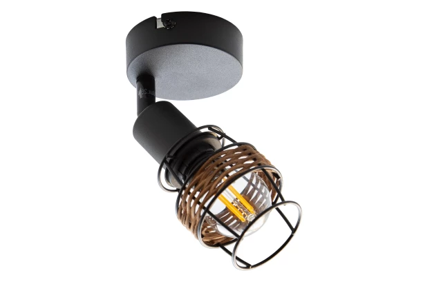 Dekorativní nástěnná/stropní lampa má elegantní mřížové kovové stínidlo v černé barvě, které je opleteno ratanem. Zajímavá kombinace materiálů dodává svítidlu stylový vzhled. Světlo procházející skrz mezery poskytne kreativní světelné efekty a vnese do ložnice či obývacího pokoje útulnou atmosféru.