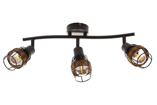 Dekorativní stropní lampa má 3 svítidla s elegantním mřížovým kovovým stínidlem v černé barvě, které je opleteno ratanem. Zajímavá kombinace materiálů dodává osvětlení stylový vzhled. Světlo procházející skrz mezery poskytne kreativní světelné efekty a vnese do ložnice či obývacího pokoje útulnou atmosféru.