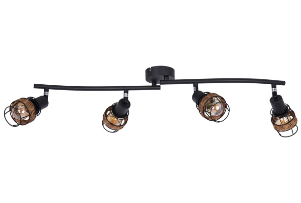 Dekorativní stropní lampa má 4 svítidla s elegantním mřížovým kovovým stínidlem v černé barvě, které je opleteno ratanem. Zajímavá kombinace materiálů dodává osvětlení stylový vzhled. Světlo procházející skrz mezery poskytne kreativní světelné efekty a vnese do ložnice či obývacího pokoje útulnou atmosféru.