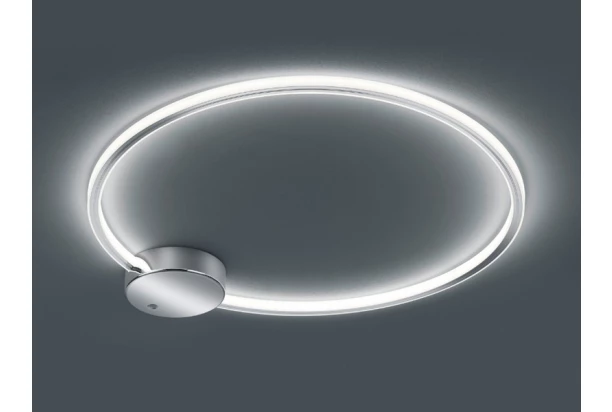 Velice jednoduché, ale elegantní stropní nebo nástěnné osvětlení ve tvaru úzkého prstence s úspornou LED technologií je vyrobeno z plastu v chromově lesklém provedení. Pomocí dálkového ovladače lze měnit barvu světla ve spektru RGBW (červená, zelená, modrá, bílá) a postupně tlumit intenzitu světla.
