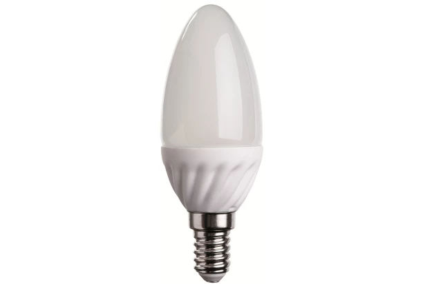 Úsporná E14 LED žárovka o světelném toku 300 lumen a příkonu 3 W.