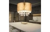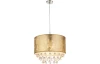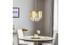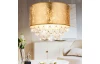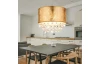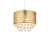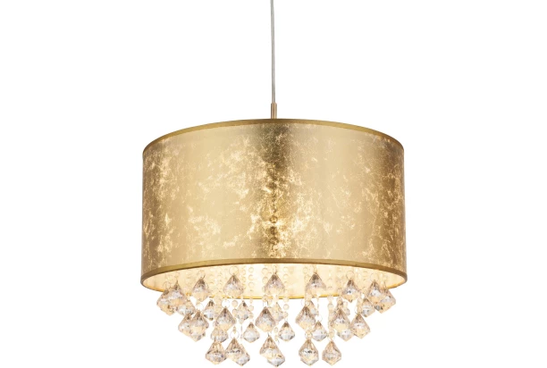 Elegantní a moderní lustr s průměrem 40 cm ze série Amy boduje svým designem a materiály. Textilní stínidlo zlaté barvy má metalickou povrchovou úpravu a díky různým průhlednostem získává dodatečný lesk. Závěsná lampa je ozdobena hustým zavěšením akrylových krystalů, které lámou světlo a vytváří malé duhy na stropě a stěnách. Svítidlo tak dodává místnosti jiskřivý a luxusní vzhled a hned upoutá pozornost.