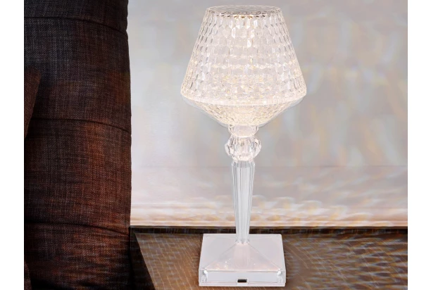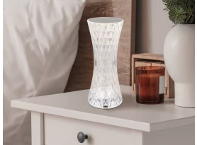 Stolní LED lampa z řady Gixi z čirého plastu s křišťálovým efektem, který dodává svítidlu luxusní vzhled, je elegantní a stylový doplněk do každého interiéru, kterému dodá jiskřivý lesk. Lampička o výšce 26 cm je vybavena dotykovým stmívačem, který umožňuje plynulou změnu intenzitu světla. Svítidlo má také funkci změny barevného tónu světla (CCT), což umožňuje vybrat si z teplých (2700 K) až studených (6500 K) odstínů bílého světla. Pomocí přiloženého USB kabelu můžete světlo snadno nabíjet a ovládat pomocí tlačítka ON/OFF.