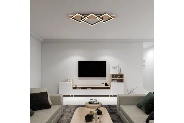 Toto moderní stropní svítidlo ze série Beatrix zaujme svým stylovým designem a stane se centrem každého Vašeho pokoje. Na stropním držáku ve vzhledu dřeva jsou 3 hranaté LED panely o celkové délce 61 cm, které svítí teplým bílým světlem 3000 Kelvinů a vytváří tak skvělou atmosféru.