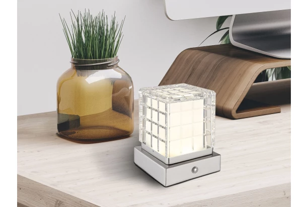 Elegantní stolní lampa zaujme moderním designem a kvalitním zpracováním. Spojení niklového kovu a čirého satinovaného akrylového skla dodává svítidlu stylový vzhled vhodný do každého interiéru. Díky dotykovému stmívači snadno přizpůsobíte jas i barvu světla svým potřebám (teplota světla 2700–6500K). Lampa je multifunkční – můžete ji postavit na stůl nebo připevnit na stěnu. Vestavěná dobíjecí baterie (CR18650 1800mAh 3,7V) zajišťuje až 8 hodin svícení a pohodlně ji dobijete pomocí přiloženého USB kabelu. Ideální volba pro ty, kteří hledají stylové a praktické osvětlení.