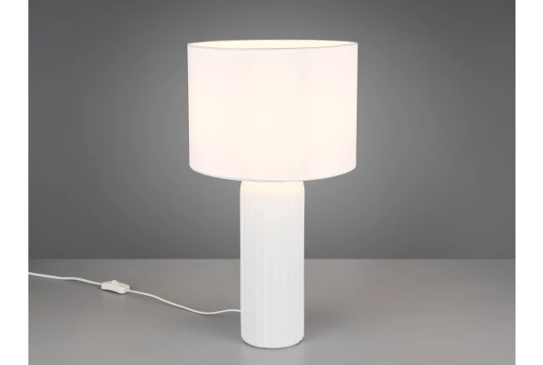 Elegantní stolní lampa se díky svým čistým liniím snadno začlení do jakéhokoli interiéru. Ať už ji umístíte na noční stolek v ložnici, do obývacího pokoje či předsíně, její jemné světlo a vytříbený design vytvářejí klidnou, příjemnou atmosféru. Tělo lampy je vyrobeno z matně bílé keramiky, kterou doplňuje bílé látkové stínidlo podtrhující její lehkost a eleganci. Výška 51 cm.