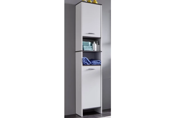 Koupelnová vysoká skříňka California, bílá/šedý dub