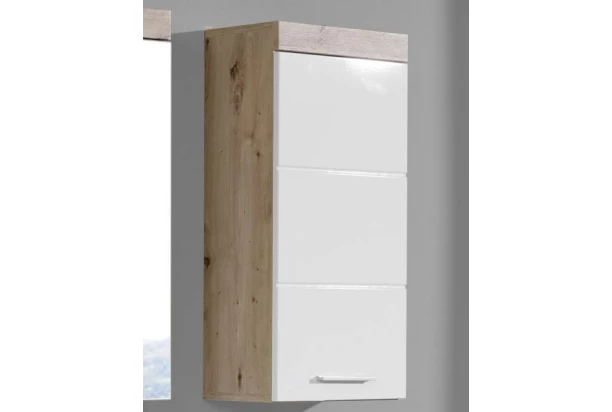 Zařiďte si svůj domov moderně, prakticky a zároveň útulně – koupelnová závěsná skříňka z kolekce Amanda v dekoru sukový dub/bílý lesk vytvoří příjemné domácí prostředí v prostoru koupelny.