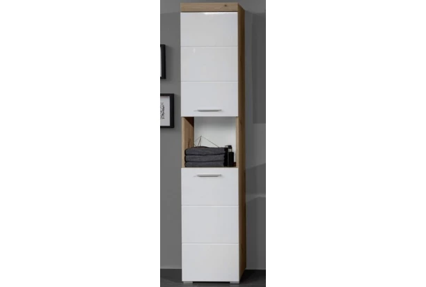 Koupelnová vysoká skříňka Amanda 103, sukový dub/bílý lesk