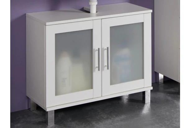 Koupelnová skříňka pod umyvadlo z řady Orlando. Plochy satinového skla v univerzálně bílém rámu skvěle zapadnou do každé koupelny.