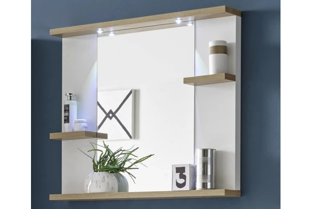 Zrcadlový panel s policemi South, bílá/dub riviera, LED osvětlení
