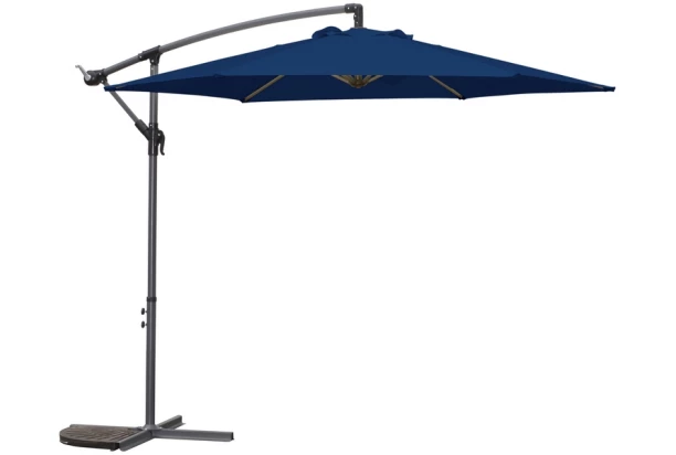 Extra velký slunečník, pod který lze ukrýt celou zahradní soupravu. Včetně kliky pro snadné sklápění.