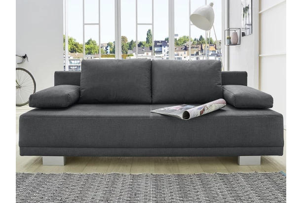 Nadčasová pohovka s rozkládací funkcí na lůžko pro hosty. Polyuretanová pěna zajišťuje příjemný komfort během sezení i ležení. Součástí jsou zádové a područkové polštáře. Do úložného prostoru lze uschovat například ložní prádlo anebo sezónní věci. Díky očalouněné zádové části lze pohovku umístit i do prostoru v místnosti.