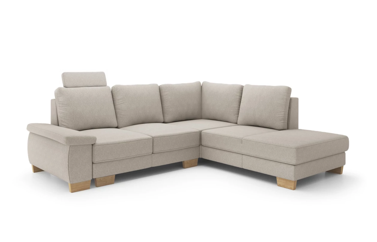 Komfortní a prostorná rohová sedací souprava s velkými opěrnými polštáři, funkcí rozkladu na lůžko i úložným prostorem. Potažena do příjemně měkké látky se zvýšenou odolností v barvě hnědá. Pohodlné sezení doplňuje navíc opěrka hlavy, kterou lze libovolně umístit na jakékoliv místo. Varianta sedačky tvoří s otomanem levý roh.