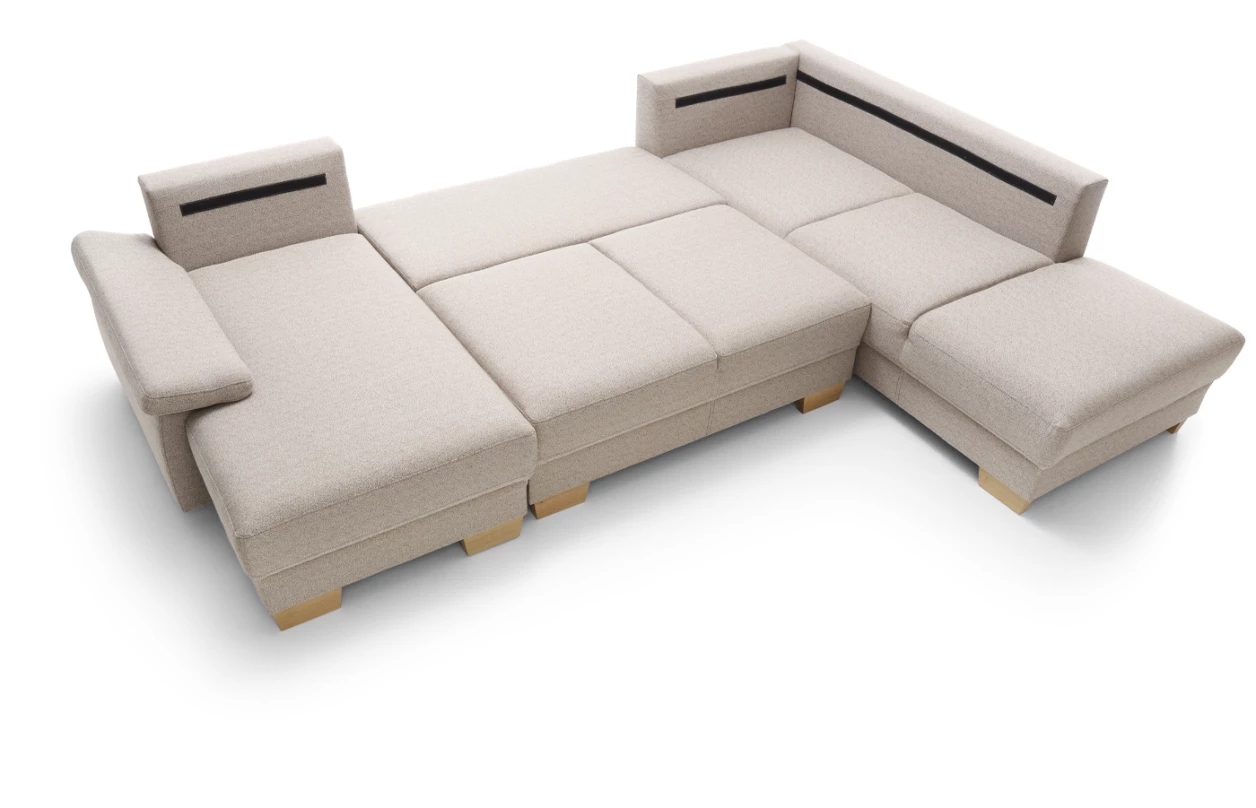 - funkce rozkladu na příležitostné lůžko: plocha 130×203 cm (sklápěcí typ rozkladu – příležitostné lůžko snadno vznikne po vysunutí sedáku vpřed a sklopení opěráku)